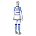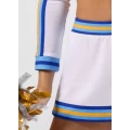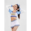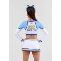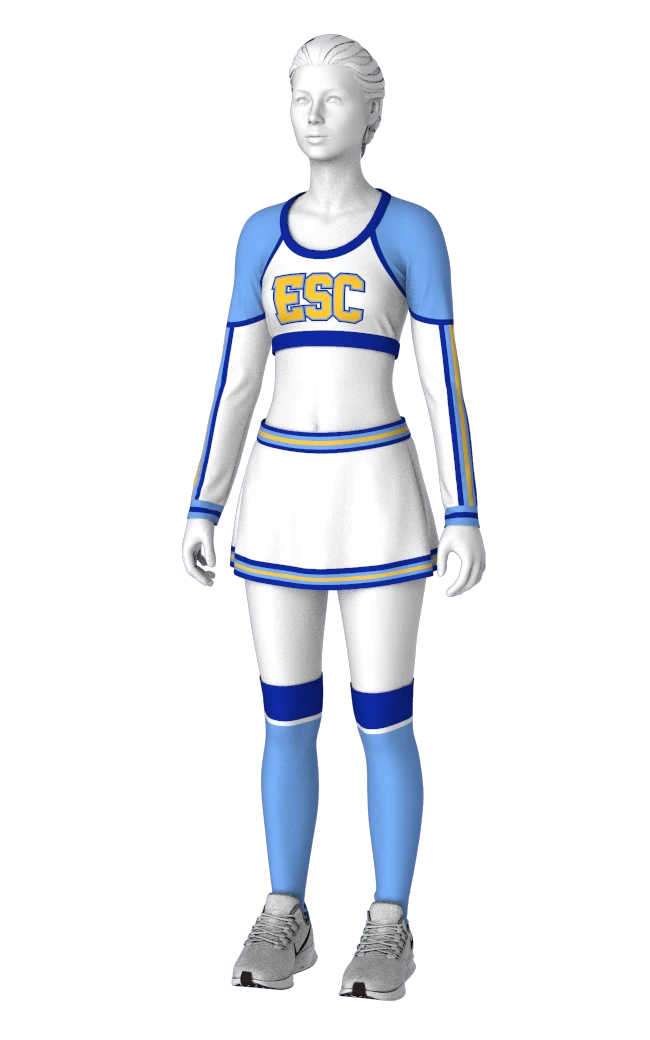 EscaperОписание: Комплект чирлидера женский: топ и юбка. Топ короткий с втачным длинным рукавом, на широкой манжете. Вырез декольте. Юбка чуть расклешенная на подкладке. Шортики внутри. Полная сублимация — любой цвет и дизайн (уже входит в стоимость). Возможно дополнить комплект гетрами и бантом.