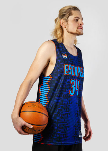EscaperОписание: Двухсторонняя баскетбольная майка прямого силуэта. Свободный крой, без боковых вставок, круглая горловина. Подгибка по горловине и проймам. Сублимация изделия обеспечивает возможность выбрать любые цвета и дизайн которые не выцветут за любое количество стирок. Полная сублимация — любой цвет и дизайн (уже входит в стоимость).